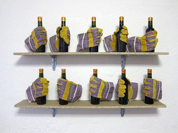 À l’occasion du vernissage de “Prost” (2014), 10 bouteilles de vin individuelles et 18 tire-bouchons en étain étaient à vendre.